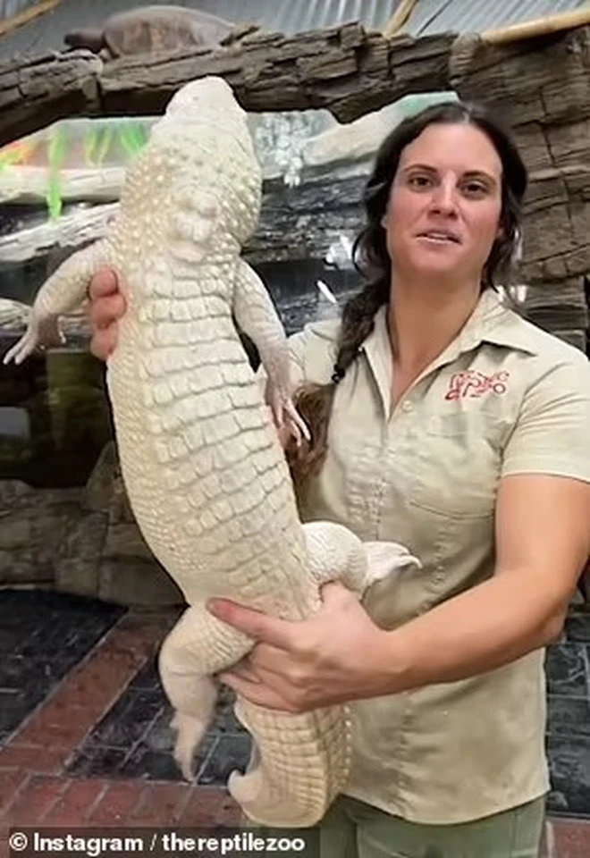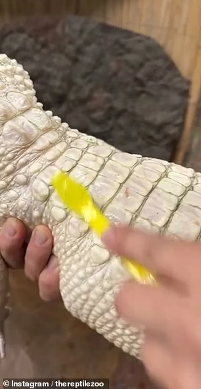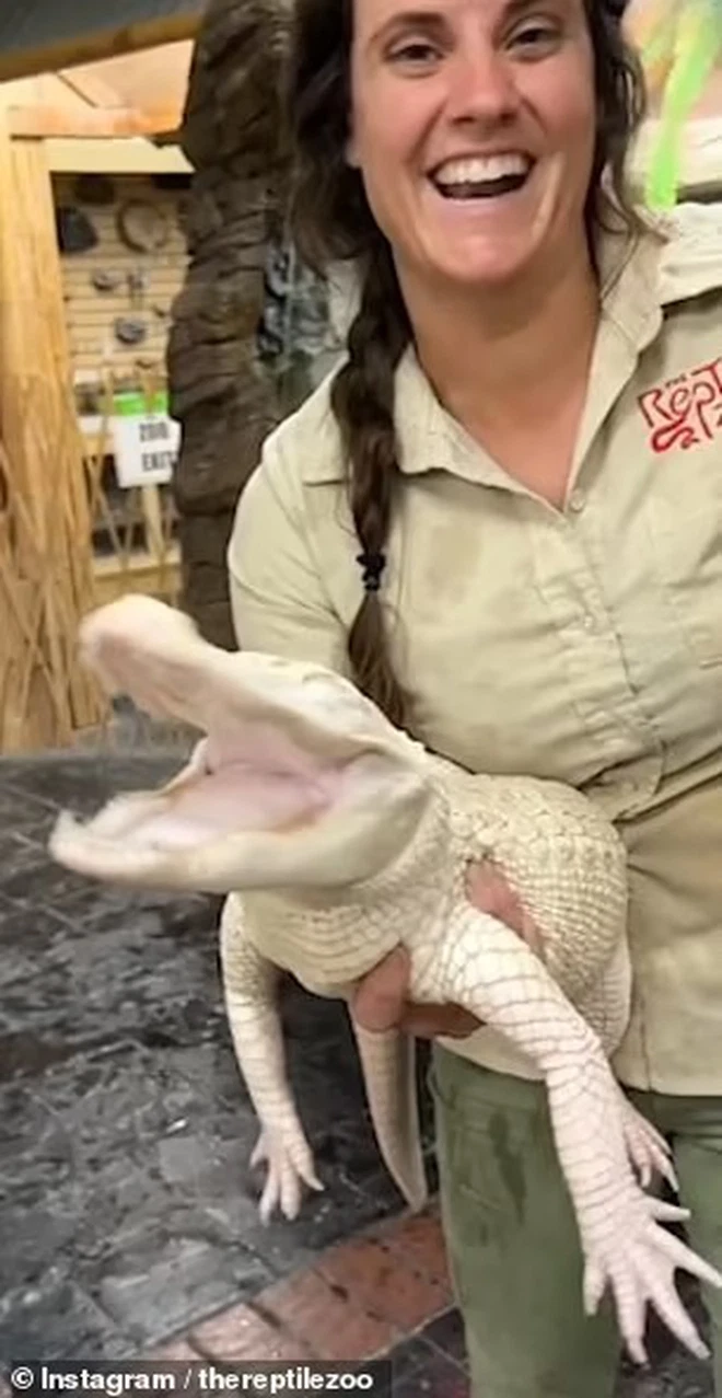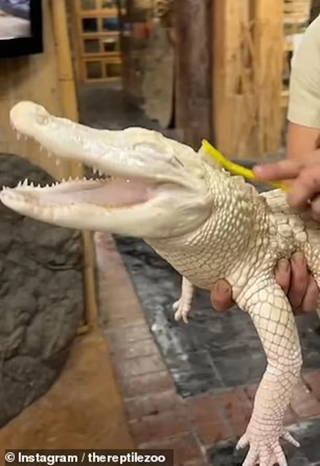 Theo Daily Mail, mới đây, một đoạn video bé cá sấu bạch tạng trắng muốt đã gây sốt trên mạng xã hội bởi khuôn mặt hài hước của cô bạn nhỏ khi được quản lý vườn thú "gãi đúng chỗ ngứa".