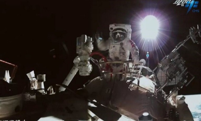 Nữ phi hành gia Wang Yaping thực hiện chuyến đi bộ không gian đầu tiên bên ngoài trạm Thiên Cung hôm 7/11 cùng với chỉ huy Zhai Zhigang.