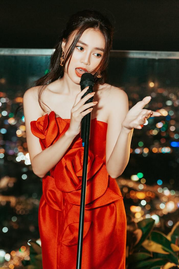 Cụ thể, gần đây trên Facebook, Ninh Dương Lan Ngọc đã hai bức ảnh mới với chiếc đầm đỏ rực. Điều đáng chú ý là không chỉ ở visual của nữ diễn viên mà Lan Ngọc còn đang cầm mic, thần thái rất say sưa, tập trung vào việc hát. Không chỉ vậy, Lan Ngọc còn đăng cùng một dòng caption: "Cô gái với niềm đam mê ca hát chưa bao giờ tắt".