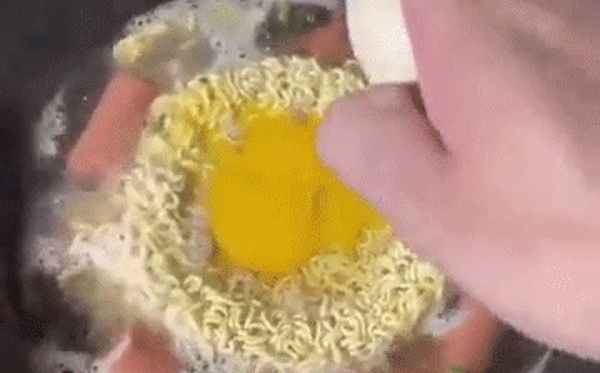 Có nước sôi, có mì, có xúc xích, lại có cả trứng, cứ tưởng sẽ có một bát mì ngon. Ngờ đâu, quả trứng đáng ghét lại bỗng dưng... dở chứng, hoặc là do bàn tay xui xẻo của thanh niên này đã lấy ngay đúng quả trứng bị thối. Và kết quả là đi luôn cả bát mì...
