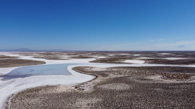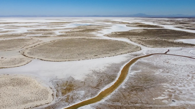 Hồ nước cạn khô để lại lượng muối khổng lồ.