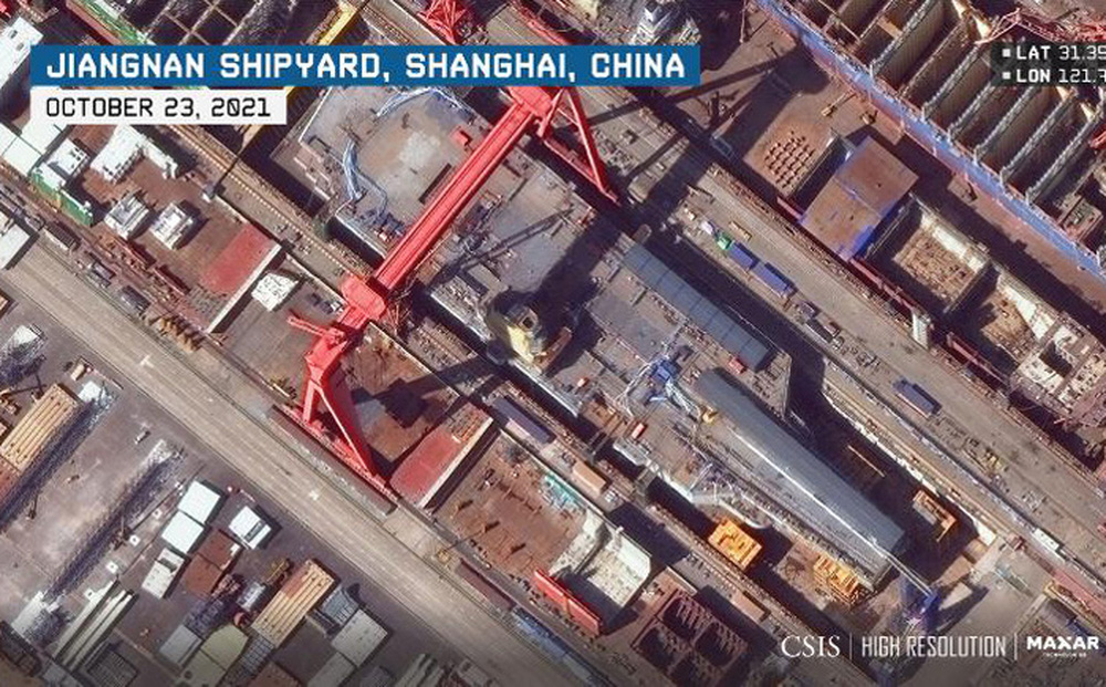 Kênh CNN (Mỹ) cho biết Trung tâm Nghiên cứu chiến lược và quốc tế (CSIS) đã công bố ảnh vệ tinh chụp ngày 23/10 về tàu sân bay lớp 003 của Trung Quốc tại xưởng đóng tàu Jiangnan ở Thượng Hải.