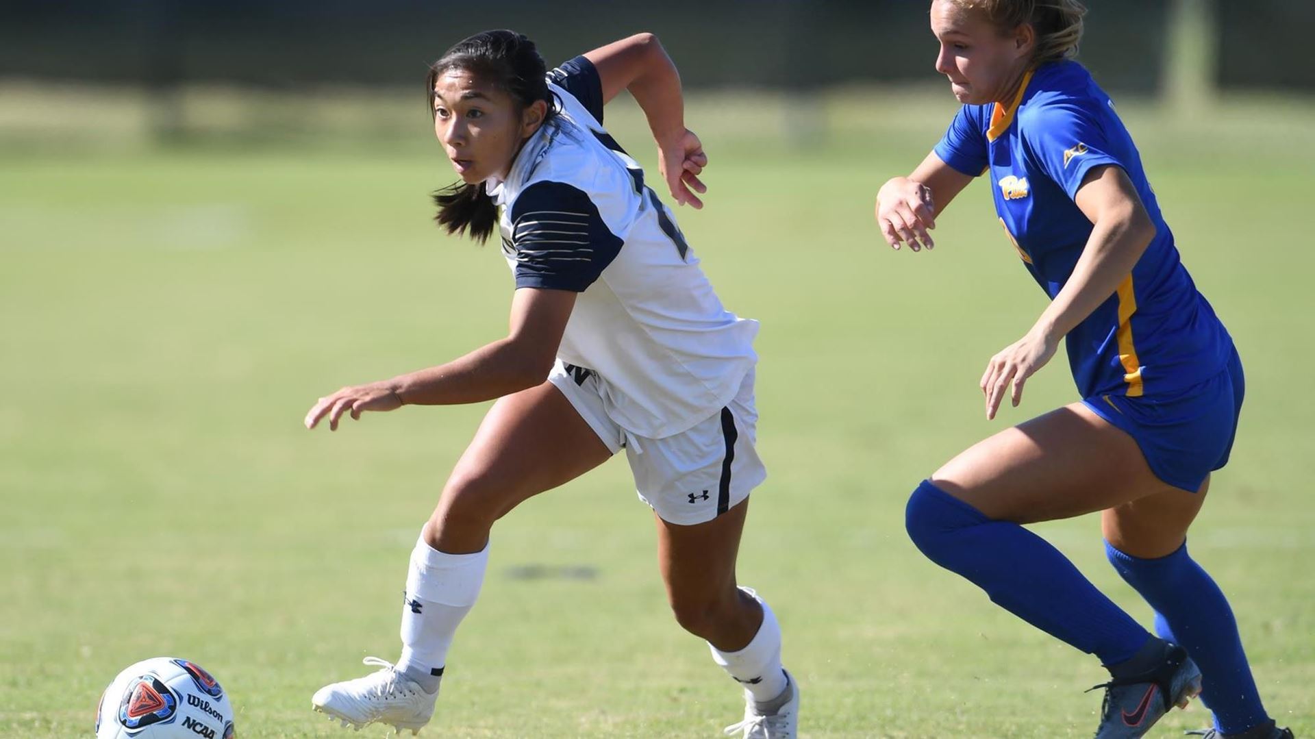 Victoria Trần (trái) trong màu áo Học Viện Hải Quân. (Hình: Patriotleague.org)Cô Victoria Trần, cư dân Clarksville, Maryland, và cô Chloe Dawson, là hai cầu thủ của đội bóng đá nữ Học Viện Hải Quân được chọn là cầu thủ xuất sắc trong năm của Academic All-Patriot League Team 2021.