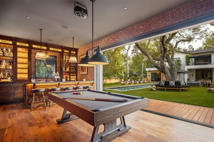 Ngôi nhà được trang bị quầy bar cổ điển, bàn bi-a, bàn DJ máy tạo sương mù và đèn disco để tổ chức bữa tiệc tại nhà.