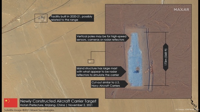 Hiện chưa rõ tại sao Trung Quốc lại xây dựng hai mô hình tàu sân bay Mỹ ở cách nhau 500km trên sa mạc. Giới chuyên gia cho rằng, Trung Quốc có thể muốn mô phỏng kịch bản tấn công hai tàu sân bay Mỹ ở khoảng cách xa.