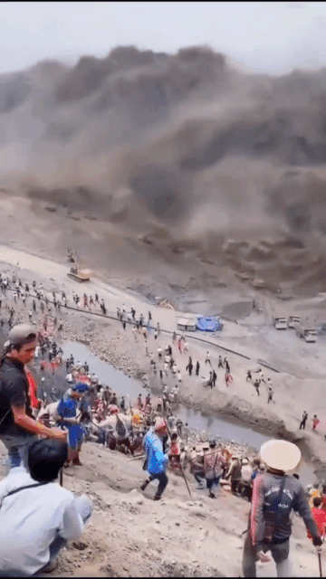 Trong video, hàng trăm người đang có mặt trên sườn đồi cát, từ xa là một cơn bão cát khổng lồ với sức cuộn khủng khiếp đang tiến sát. Một số du khách hoảng loạn bỏ chạy