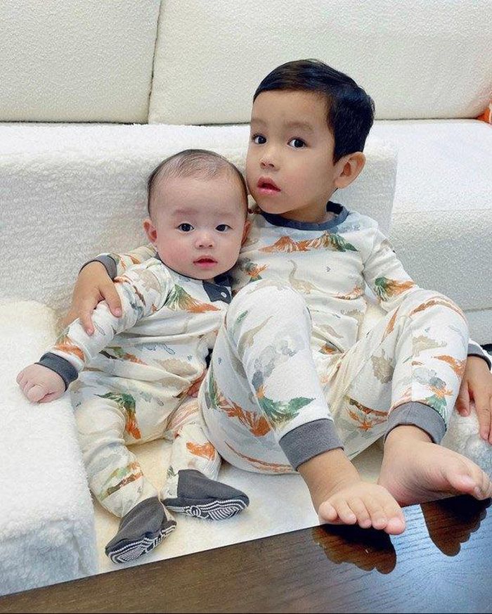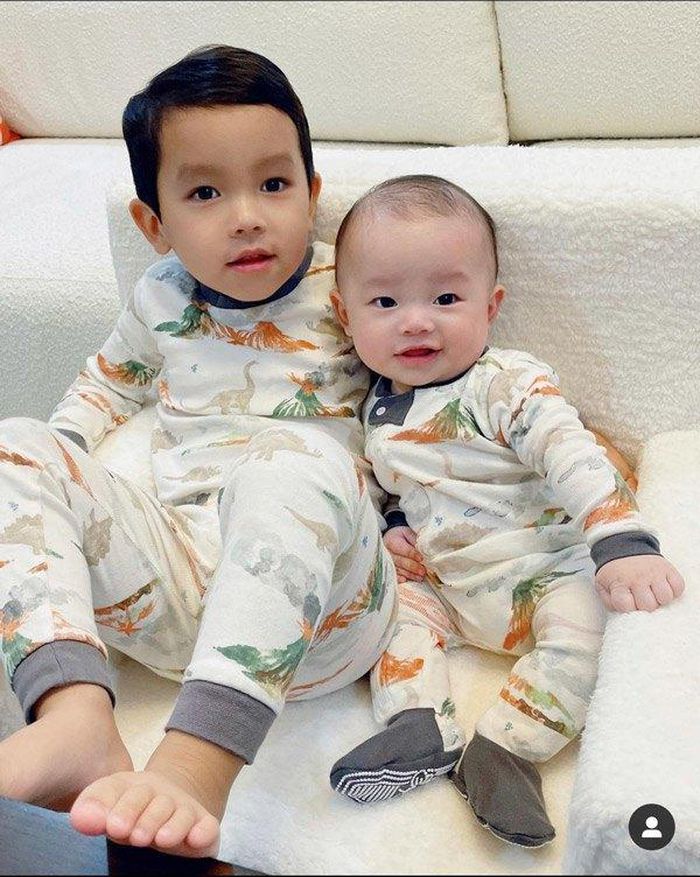 Hai nhóc tì điển trai nhà Phạm Hương được mẹ cho diện đồ đôi đẹp và thời thượng.