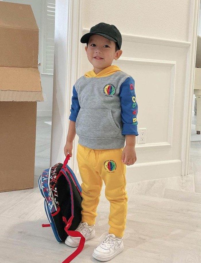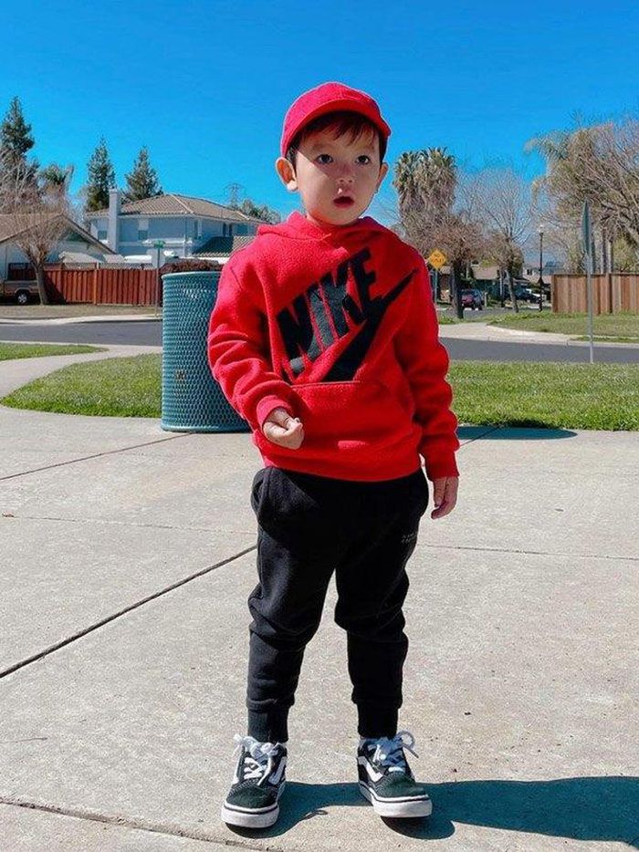 Cậu bé còn được diện đồ đôi đẹp mắt và thời thượng cùng anh hai, hình ảnh hai bé diện đồ đôi gây sốt mạng xã hội.