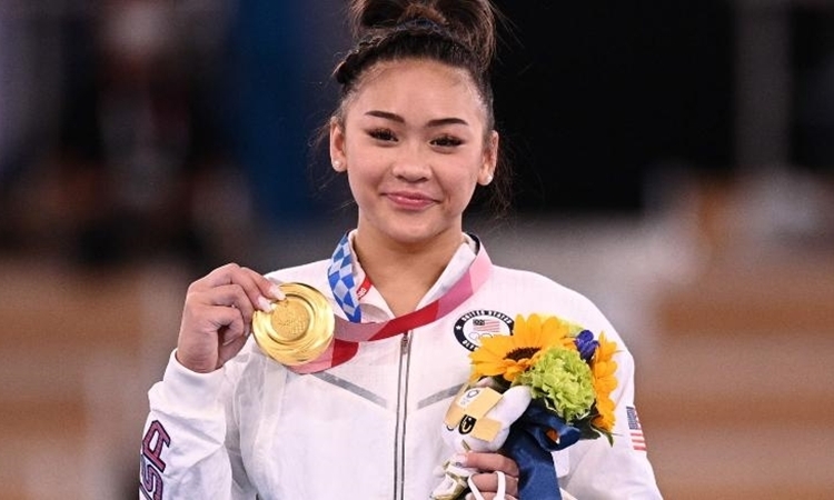 Vận động viên Mỹ gốc Á Suni Lee giành huy chương vàng thể dục dụng cụ tại Olympic Tokyo hồi tháng 7. Ảnh: AFP.