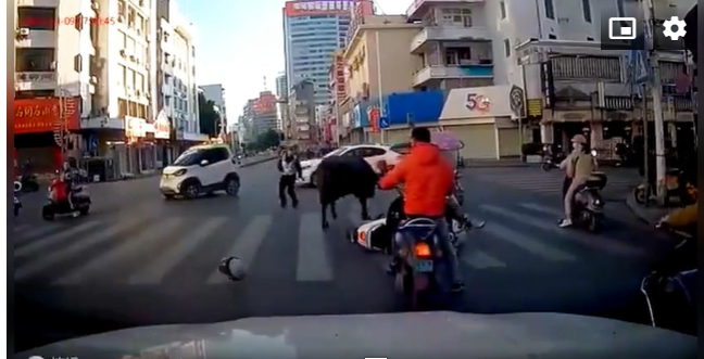 Một con trâu bất ngờ xuất hiện trên đường phố đông đúc người và xe cộ qua lại đã bị cảnh sát Trung Quốc bắn chết, sau khi con vật làm bị thương 7 người.