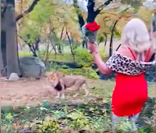 Trèo rào sở thú để tỏ tình với sư tử. Hôm 11/11, một phụ nữ Mỹ trèo qua hàng rào ở sở thú Bronx, New York rồi liên tục nhún nhảy, vẫy hoa hồng, hôn gió với sư tử.