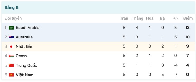 Sau năm lượt đầu vòng loại cuối World Cup 2022 - khu vực châu Á, thầy trò HLV Park chưa giành điểm nào. Ngoài thất bại 1-3 dưới tay Saudi Arabia, đội tuyển thua Nhật Bản và Australia cùng tỷ số 0-1, thua Trung Quốc 2-3 và thua Oman 1-3.