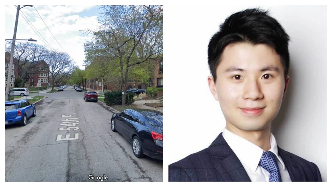 Zheng Shaoxiong (phải), nam sinh viên Trung Quốc theo học tại Đại học Chicago, Mỹ, bị bắn chết. Ảnh: Google Maps/ University of Chicago