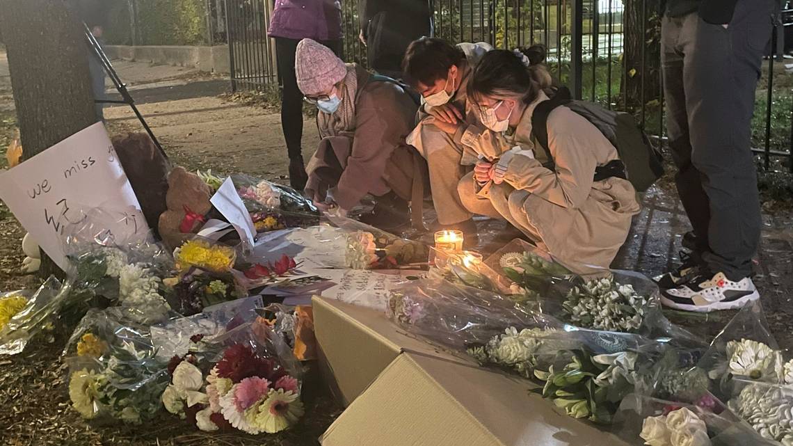 Bạn bè và cộng đồng người Trung Quốc ở Chicago tưởng nhớ Zheng. Ảnh: AP