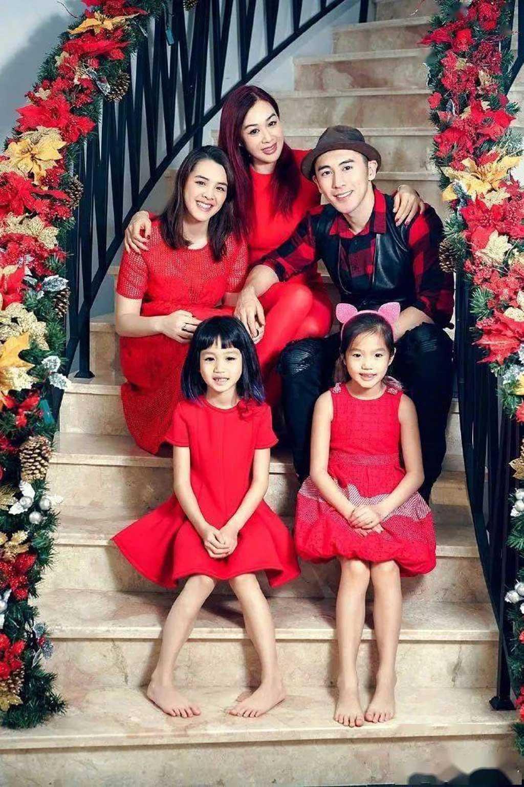 Chung Lệ Đề cùng chồng trẻ và 3 con gái riêng. Weibo