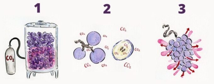 Rượu được sản xuất trong một quá trình được gọi là ngâm rượu cacbonic. Sau khi thu hoạch, toàn bộ quả nho được cho vào một thùng lớn đậy kín chứa đầy carbon dioxide. Nho ở đáy thùng từ từ vỡ ra, lên men khi bị nghiền dưới trọng lượng của nho ở trên. Trong quá trình này, chúng thải ra nhiều CO2 hơn, giúp tất cả nho chưa nghiền lên men kỵ khí (không cần oxy), tạo ra loại rượu tươi với lượng tannin thấp.