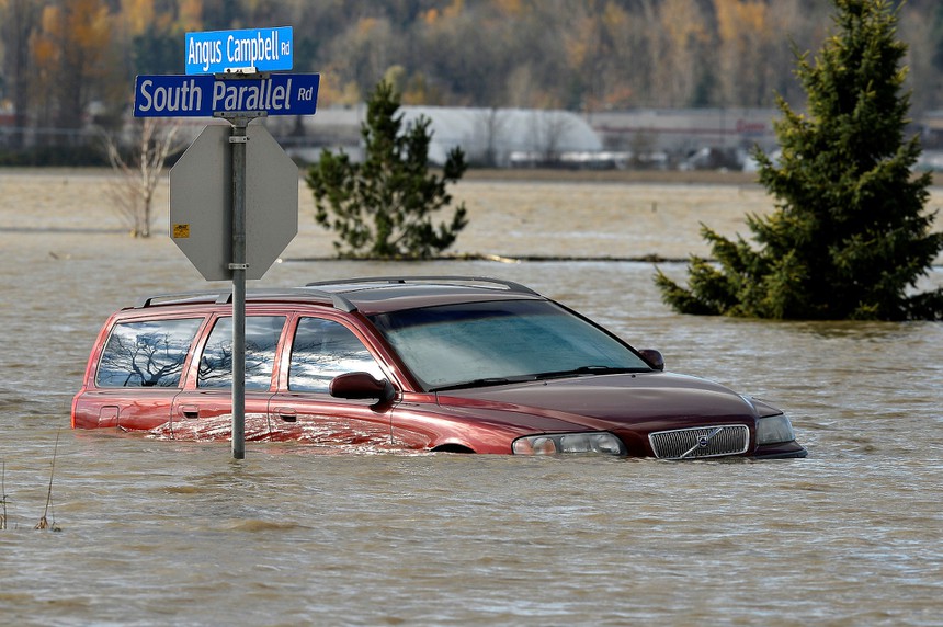 Ôtô bị nước lụt nhấn chìm tại Abbotsford, British Columbia, Canada hôm 16/11. Ảnh: Reuters.