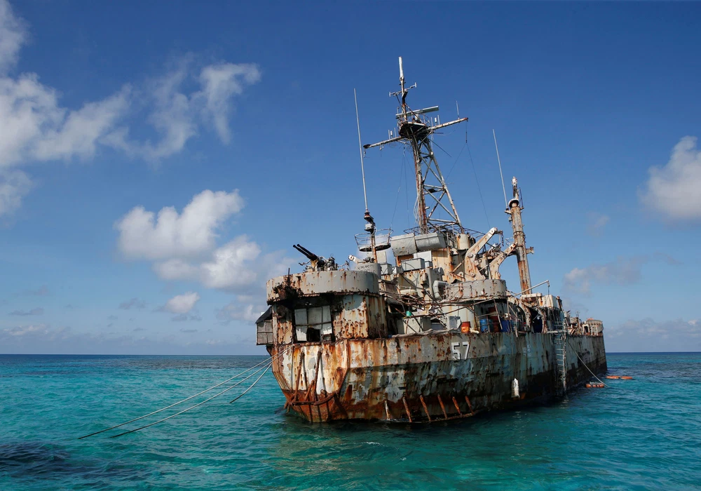 Tàu BRP Sierra Madre mắc cạn ở Bãi Cỏ Mây từ năm 1999, được Philippines sử dụng như một tiền đồn trái phép nhằm duy trì hiện diện phi pháp ở khu vực quần đảo Trường Sa của Việt Nam.