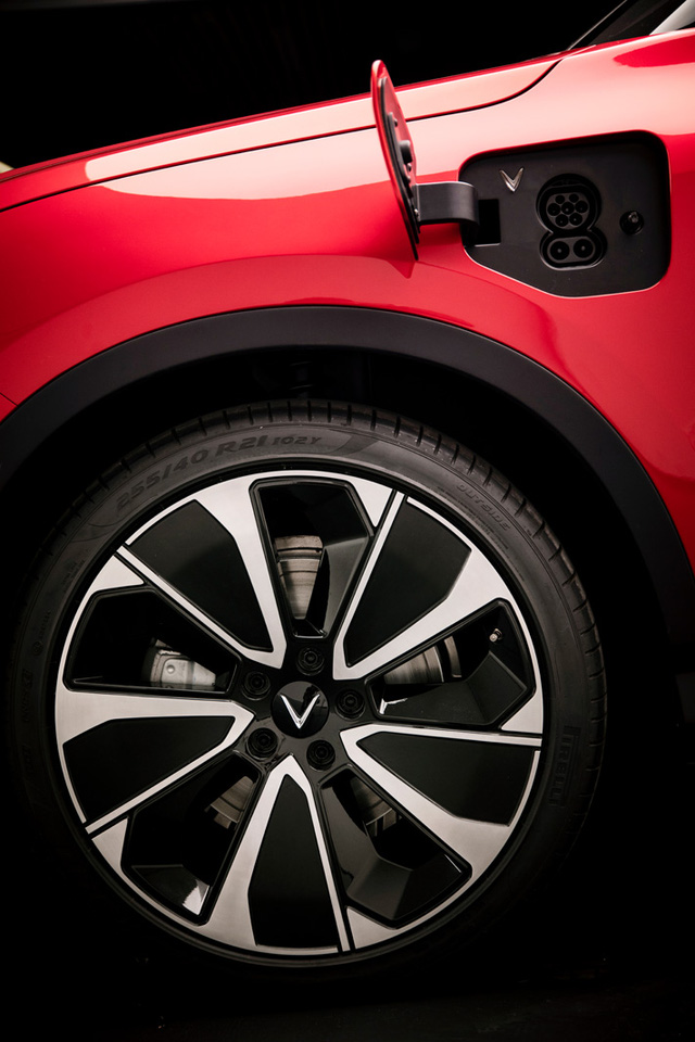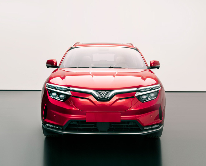 Chiếc VF e35 ngoài đời thực mang màu sơn đỏ giống ảnh concept được công bố trước đây.