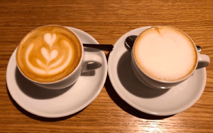 Cappuccino phong cách truyền thống của Italy (bên phải) và cappuccino được trang trí ở các nước khác. Ảnh: 43factory