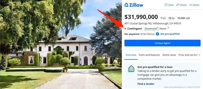 Hình ảnh cập nhật tình trạng giao dịch của căn nhà trên trang Zillow. Ảnh: Zillow.