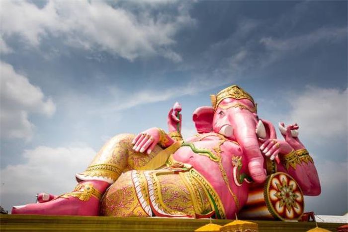 Tượng thần đầu voi Ganesha đặt tại đền Rattanaram ở Chachoengsao (Thái Lan). Tượng có màu hồng có cao 16m dài 22m. Voi thần Ganesha biểu tượng cho sự thoải mái, hạnh phúc và thịnh vượng.