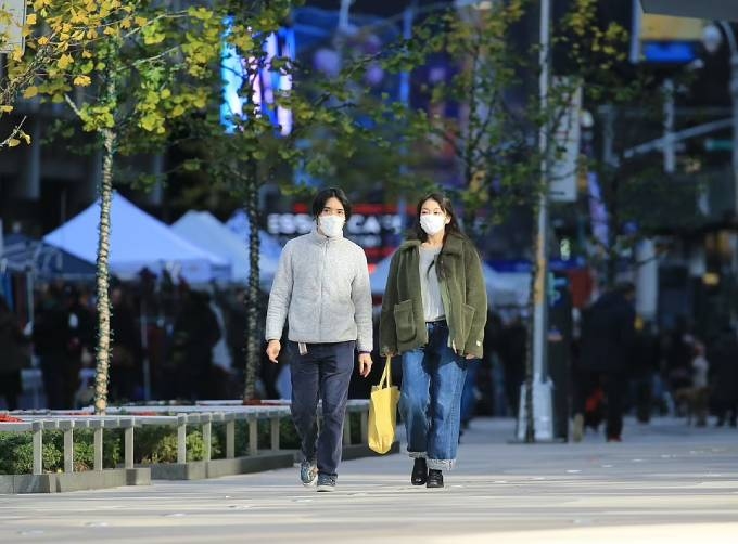 Mako và chồng đi dạo trên đường phố New York, Mỹ, hôm 20/11. Ảnh: Mail