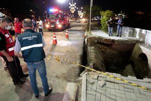 Một đoạn đường dành cho người đi bộ gần sông Cachoeira đã bất ngờ bị sập, tạo ra một hố lớn và những người đi qua bị rơi xuống hố.