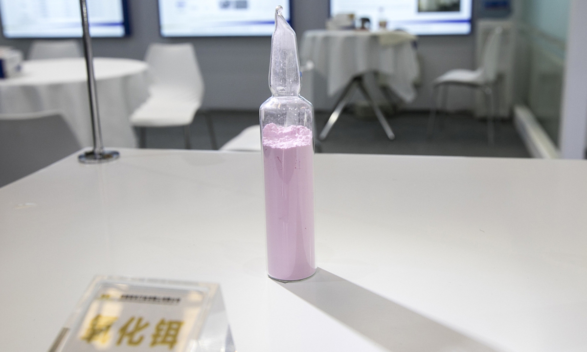 Oxit Erbium (III) của Công ty Đất hiếm Golden Dragon được trưng bày ở Trung Quốc. Ảnh: VCG