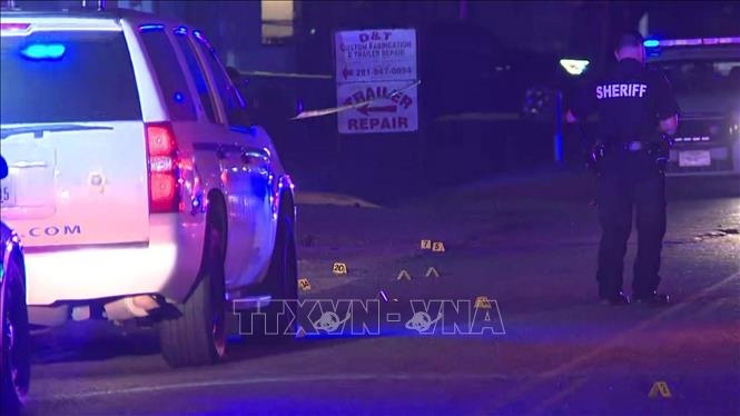Cảnh sát điều tra tại hiện trường một vụ xả súng ở gần thành phố Houston, bang Texas, Mỹ. (Ảnh tư liệu: Ksat/TTXVN)