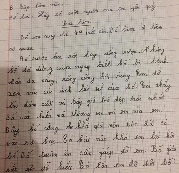 Cụ thể như mới đây, cư dân mạng tích cực chia sẻ bài văn tả người của một cậu nhóc. Theo đó đề bài ra: "Tả về một người mà em yêu quý" và em quyết định chọn bố của mình.