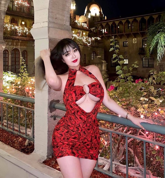 Nhờ lợi thế ngoại hình gợi cảm, Rebecca Liu tự tin lăng xê nhiều xu hướng thời trang hot, nổi bật nhất là kiểu mặc underboob. Cô nhiều lần khoe dáng trong những bộ váy bó, ôm sát cơ thể, khoe khéo vòng 1 đầy đặn.