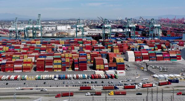 Tại hai hải cảng lớn nhất của Mỹ ở Long Beach và Los Angeles, miền Nam California, nhiều tàu chở hàng hóa xuyên lục địa phải thả neo gần bến để chờ xuống hàng v́ t́nh trạng tắc nghẽn hiếm thấy trong ngành hàng hải.
