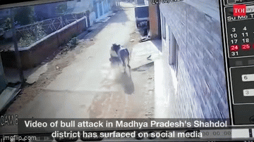 Vào giữa năm 2020, một người đàn ông đang đi bộ ở 1 con đường tại thành phố Shahdol, bang Mahhya Pradesh thì bất ngờ bị 1 con bò đực tấn công hung hãn. Nó liên tục húc ông ta xuống mặt đất, khiến nạn nhân ngã dúi dụi xuống đường.