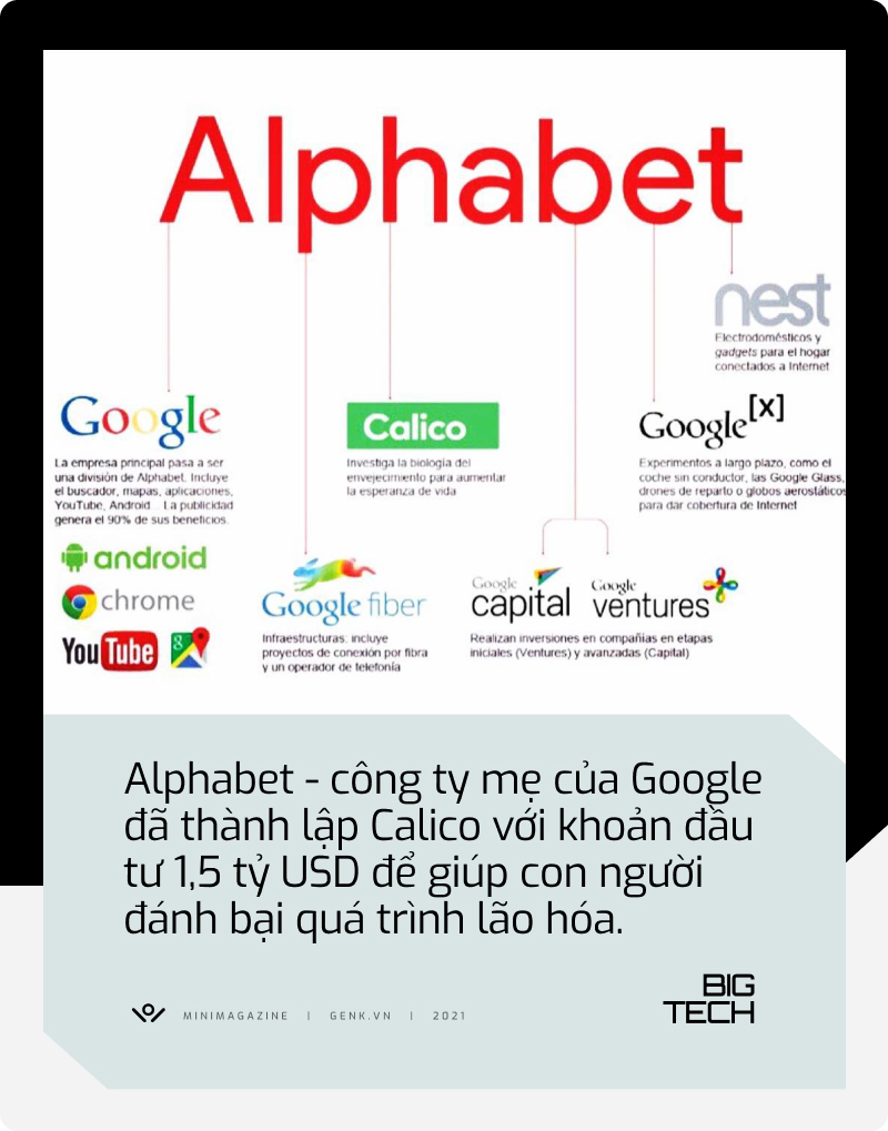 Ngoài Peter Thiel và Jeff Bezos, chúng ta còn thấy Larry Ellison của Oracle tham gia đầu tư vào lĩnh vực này. Những người sáng lập Google, Sergey Brin và Larry Page, cũng đã giúp thành lập Calico, một công ty con của Alphabet vận hành một nguồn tài chính hàng trăm triệu USD cho nhiệm vụ chống lão hóa.