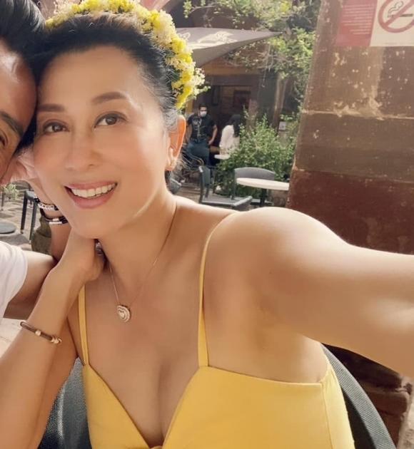 MC Kỳ Duyên gây chú ý khi đăng ảnh rạng rỡ, trên đầu đội vòng hoa. Nữ MC hải ngoại mặc áo váy hai dây khoe vòng một căng đầy. Đáng chú ý ở bức ảnh cuối, MC Kỳ Duyên đăng ảnh dựa đầu vào đầu một người đàn ông giấu mặt.