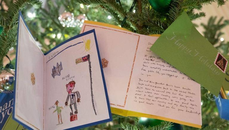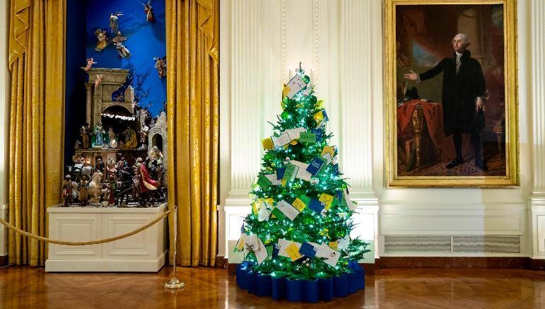 Những bức thư được gửi đến Tổng thống Joe Biden được sử dụng trang trí cây thông Phòng Phía Đông.