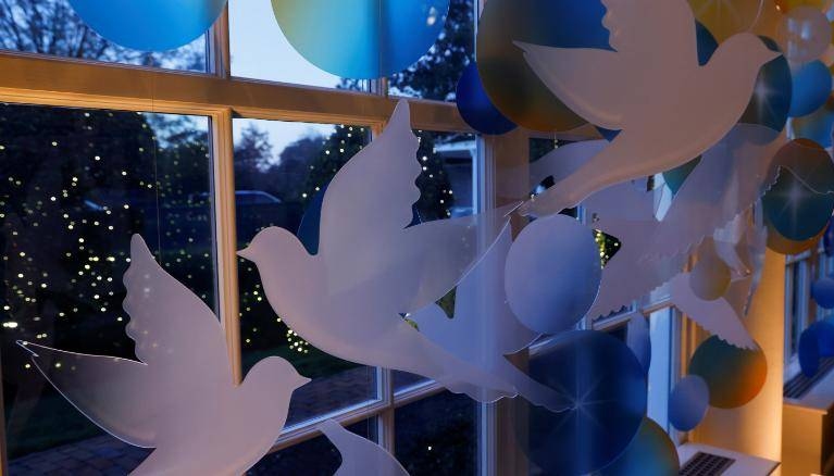 Không gian trang trí bên trong Phòng Phía Đông. Tuyên bố từ Cánh Đông cho hay Đệ nhất Phu nhân "được truyền cảm hứng từ những hành động tử tế nhỏ bé và những trải nghiệm, giúp vực dậy tinh thần chúng ta trong năm nay và suốt đại dịch".