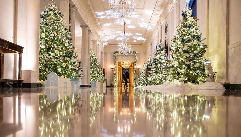 Đệ nhất Phu nhân Mỹ công bố không gian lễ hội trong tòa Bạch Ốc, với chủ đề 'Quà tặng trái tim' tôn vinh các nhân viên tuyến đầu. Nhưng mỗi phòng công cộng của Nhà Trắng được trang trí theo chủ đề riêng. Phòng Thư viện có chi tiết các cánh bướm phản ánh "món quà học tập", trong khi Phòng Vermeil có chủ đề "món quà của nghệ thuật thị giác" với vòng hoa Giáng sinh làm bằng cọ nhúng sơn.