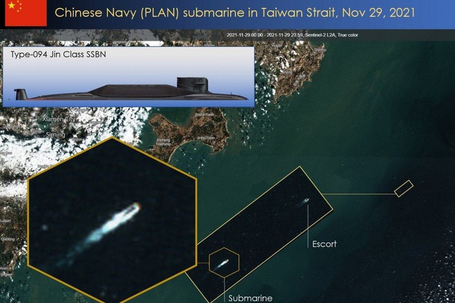 Báo South China Morning Post ngày đưa tin, ông H.I. Sutton, một nhà bình luận của Viện Hải quân Mỹ, ngày 30/11 đã đăng tải một ảnh vệ tinh được chụp bởi vệ tinh Sentinel-2 của Cơ quan Vũ trụ châu Âu cho thấy, khoảng 10h sáng ngày 29/11, một tàu ngầm mang tên lửa đạn đạo chạy bằng năng lượng hạt nhân của Trung Quốc xuất hiện ở eo biển Đài Loan cùng với một con tàu khác.