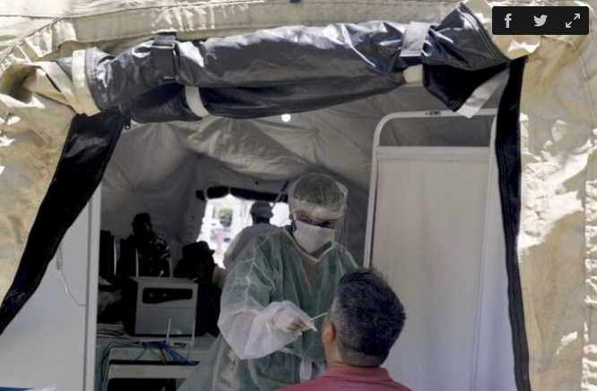 Y tá lấy mẫu xét nghiệm nCoV tại Sao Gongaclo, gần Rio de Janeiro, Brazil, hồi tháng 12/2020. Ảnh: Reuters.