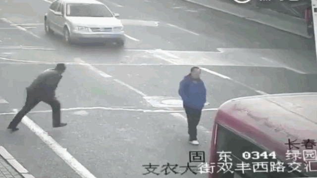 Ngờ đâu, ông ta chưa kịp thực hiện trò lừa bịp thì chiếc xe đã phóng vút qua trước mặt. Bị mất đà và đâm đầu vào thành xe một cú trời giáng, người đàn ông ngã lăn ra đất trước sự kinh ngạc của một người đi đường ngay đằng trước.