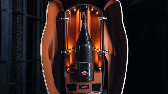 Để chào mừng sự ra đời của mẫu siêu xe La Voiture, Bugatti đã sáng chế ra chai rượu đặc biệt làm từ carbon.