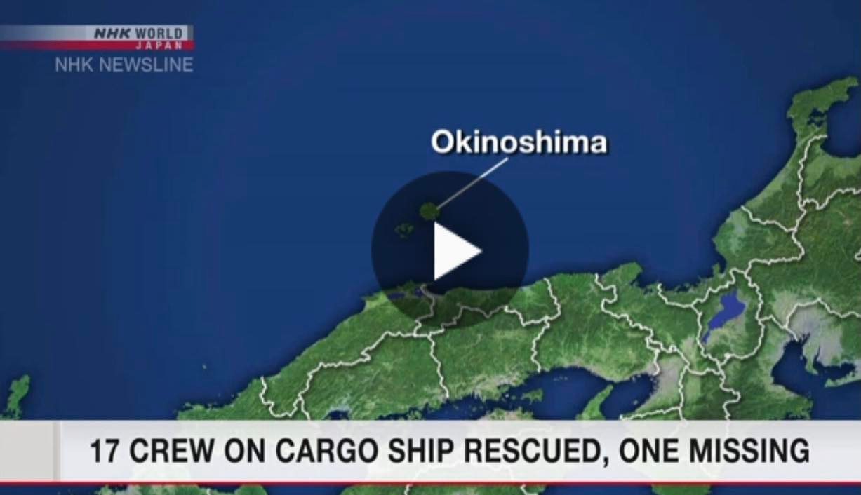 Tàu hàng có 18 thuyền viên Việt Nam bị chìm trên biển Nhật Bản. Ảnh NHK