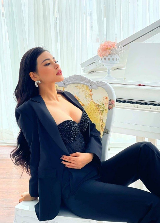 Kiểu mặc khoe hình thể nửa kín nửa hở của Trần Mai Hương khá đa dạng.