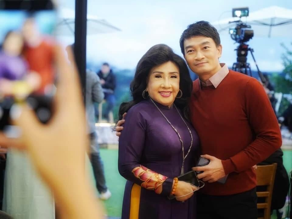 Diễn viên Trương Minh Quốc Thái chụp ảnh kỷ niệm cùng NSND Lệ Thủy trong dịp quay hình ở Đà Lạt.