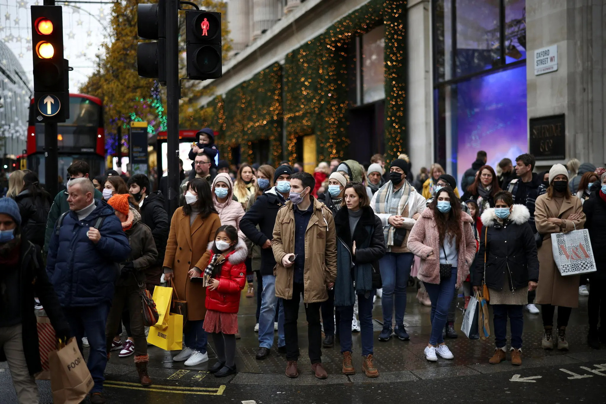 Người dân đi mua sắm nhộn nhịp tại London, bất chấp ca nhiễm biến thể Omicron đang gia tăng