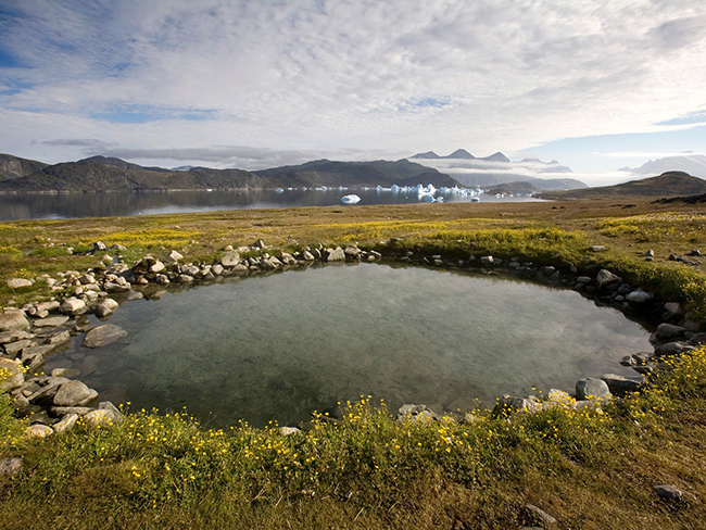 Đảo Uunartoq, Greenland: Đây là suối nước nóng duy nhất tại Greenland đủ ấm để tắm quanh năm. Vùng nước ấm dao động từ 34 - 37 độ C ngay cả trong những tháng băng giá của mùa đông, và du khách có thể thư giãn với khung cảnh ngoạn mục của các tảng băng trôi và đỉnh núi xung quanh suối.