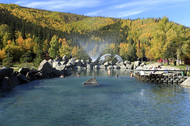 Suối nước nóng Chena, Alaska: Đây là một suối nước nóng tự nhiên với khu nghỉ mát riêng. Tại hồ có đá bao quanh, du khách có thể ngâm mình trong làn nước khoảng 41 độ C và nếu may mắn, du khách có thể nhìn thoáng qua cực quang ở đây.