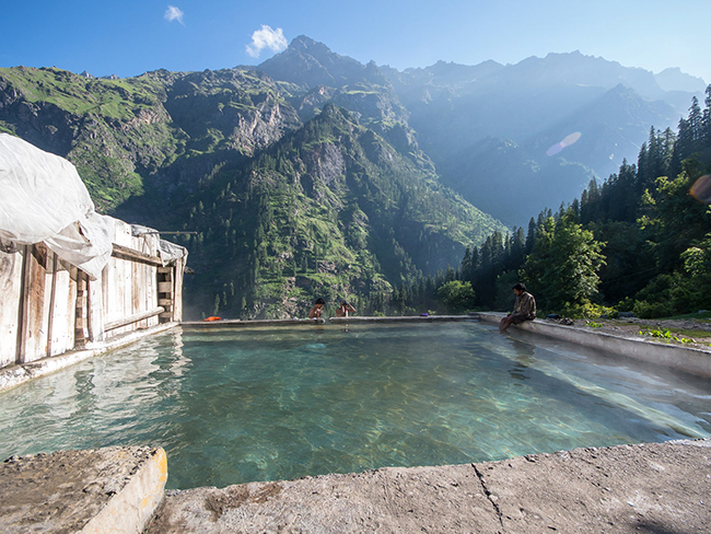 Khir Ganga, Himachal Pradesh, Ấn Độ: Suối nước nóng Khir Ganga nằm ở đồng cỏ nơi thần Shiva của đạo Hindu được cho là đã thiền định trong 3.000 năm. Tại nơi tuyệt vời này, bạn vừa được tắm trong các hồ bơi vừa được chiêm ngưỡng quang cảnh xung quanh của dãy Himalaya.